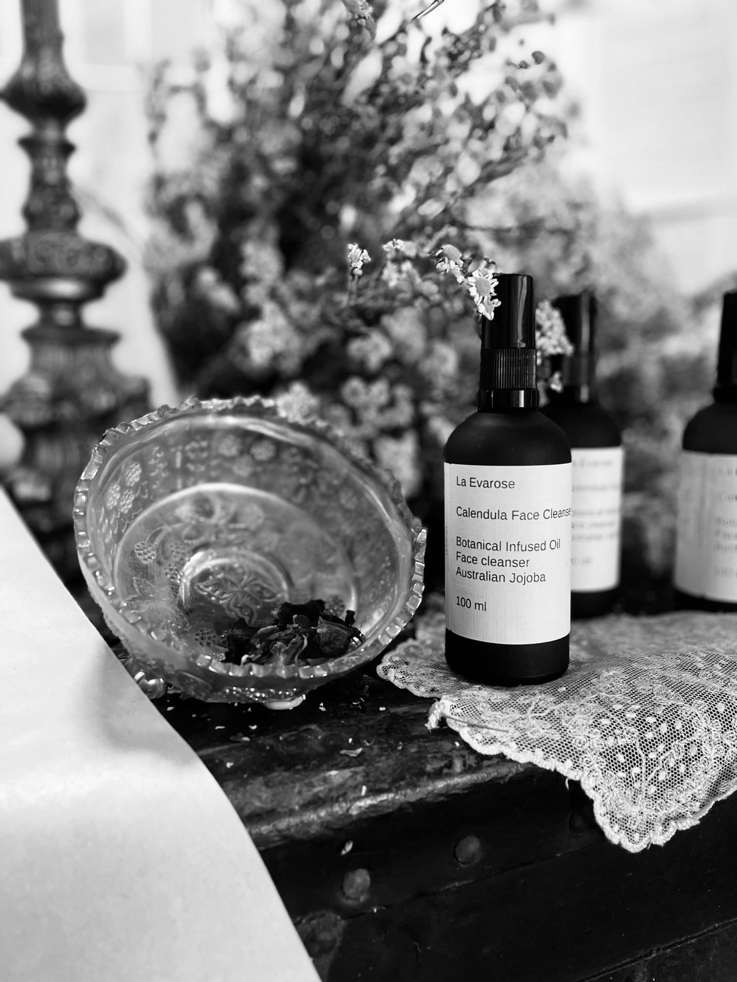 Old world roses grown in our garden form the heart of every extraction.