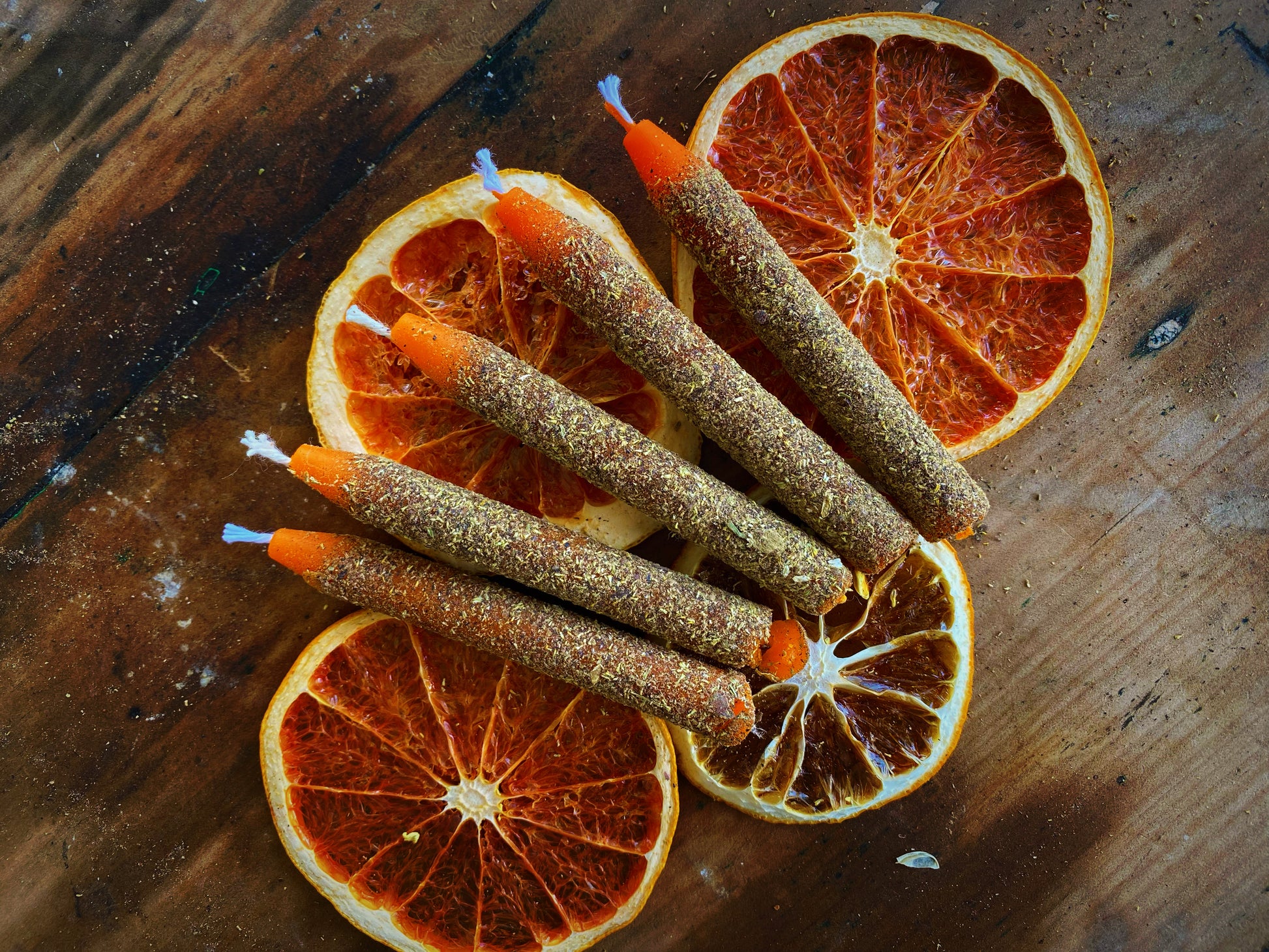 These 4 pack of candles are 9cm tall pure beeswax rolled in herbs. Burn time about 30min to 1 hr